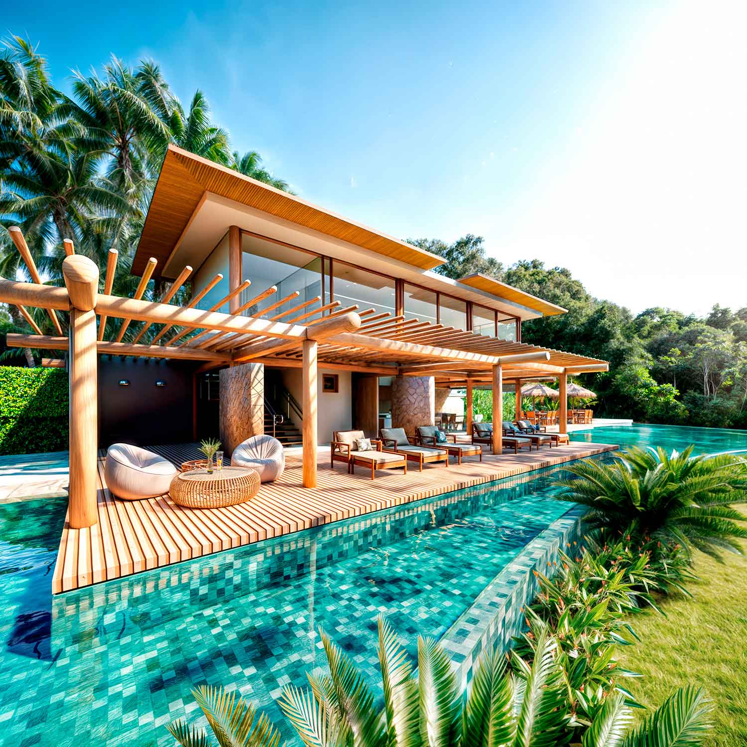 - Piscina adulto e infantil com borda infinita e deck molhado